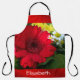 Delantal rojo, verde, amarillo, blanco, flor, flor, gerbera