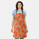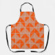 Este delantal tiene un diseño art deco de cuadrados divididos en la mitad por líneas diagonales de plata. Los cuadrados se juntan en un campo de naranja.