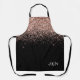 Negro y rosa dorado - Delantal de nombre monograma con brillo rosa rubor purpurina. Este es el regalo perfecto para cumpleaños dulces 16, boda, despedida de soltera, aniversario, baby shower o fiesta de soltera para alguien que ama el glamour de lujo y los estilos chic.