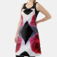 Delantal Rosas Rojas y Patrón Geométrico de Diamantes Negro