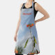 Las nubes azules y blancas son la sensación general de este bonito delantal floral, pero algunas flores del Flamboyant, de la Poinciana Real o de la Flame hacen que su naranja tropical y sus colores rojos lleguen hasta el fondo. Personalizar con un nombre. Esta imagen es fotografía botánica original de JLW_PHOTOGRAPHY.