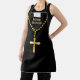 Añade tu propio nombre a este divertido delantal que cuenta con un collar de sacerdotes y una cadena de oro con cruz.