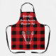 This black and red flannel Christmas apron brings festive fun to the kitchen with white-outlined utensils of a whisk, spatula, and wooden spoon. Personalize it with a name to proudly show off your title as Santa’s Favorite Chef.