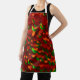 Eine Schürze in wundervollen Rottönen, ein abstraktes Design das an Rosenblätter erinnert, dazwischen etwas grün für abstrakte Blätter.