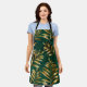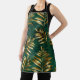 Seamless pattern of gold, jewelry, shiny fern branches and leaves on green, woodland, textured background. Golden fern.