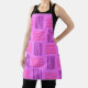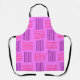 Este delantal tiene un diseño moderno de mediados de siglo que parece un tejido de líneas violetas y rosas sobre un campo de morado más claro.