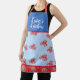 Delantal Shabby floral roja Chic Blue Gingham personalizabl