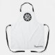 Este llamativo traje de cocina blanca presenta un osado símbolo Om negro afligido rodeado por un motivo de inspiración india y un anillo exterior. El dramático diseño negro se coordina con elegantes correas negras para una declaración potente y elegante. Perfecto para la cocina espiritual, los gallos de yoga o los regalos de personalizados, ¡personaliza el fondo con tu propia frase!