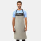 An simple, modern tan linen textured apron with a black textured band at the top, Personalize the apron with your name. Designed for you by Blackberry Boulevard.
