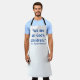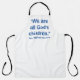 Delantal inspirado en el discurso pronunciado por el Sen. Raphael Warnock en la Convención Demócrata de 2024. Dice, "Somos todos hijos de Dios". Se muestra aquí en letras azules oscuras. El Sen. Warnock es, además, un pastor cristiano.