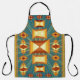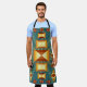 Apron con Rays Golden Sun del Suroeste por todo el Apron impreso con imagen de diseño de obra de arte de TheFabricSeal en Zazzle. Elegantemente diseñado y colorido con vibrante naranja dorado, rojo indio, crema dorada, azul turquesa y verde más colores marrón color tierra. El arte tribal espiritual del suroeste de los indios influyó en los diseños de estilo para mantas, alfombras y alfombras.