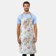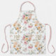 This spring themed apron has a spring tulip flower bouquet all-over pattern on a bright white background.