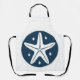 Ilustracion de una estrella de mar rodeada de estrellas blancas en círculo negro. El ilustracion es un poco exótico y bonito. Puede ser un buen diseño en tu delantal, sobre todo si te gusta el ilustracion.