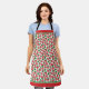 Manzana de fresas diseñada con un patrón multidireccional de fresas ilustradas, y rayas rojas y verdes a lo largo de los bordes superior e inferior. Este delantal de fresa es perfecto para todo aquel que ame las fresas y los bonitos diseños de frutas de verano.