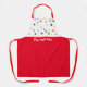 Tanto divertido como lindo. La parte del bib del delantal está decorada con puntos de polka coloridos sobre blanco, y el fondo del delantal es rojo sólido. En la parte superior del área roja está el área de plantilla del texto, en letras blancas. Gracias por comprar en CherylsArt en Zazzle.