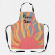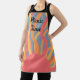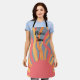 Este delantal tiene un diseño natural de un amanecer hecho de líneas curvadas en rojo, amarillo y naranja, un sol y el cielo.