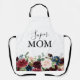 Este delantal rústico de primavera de caligrafía burdeos super mamá es el regalo perfecto para presentar a tu madre por un simple día de madre. El diseño es de color burdeos, rojo, marino, azul y ondulante radiante y flores elegantes pintadas a mano, inspirando la belleza natural.