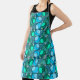 Tablier imprimé aux motifs seventies dans les tons bleus et verts