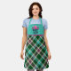 © 2020 Socialite Designs Inc. Elegante diseño de delantal de tartán con un quequito, tazas de pastel y un dicho "horneando el mundo un lugar mejor". Mantenga el texto de la plantilla o agregue su propio dicho.
