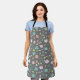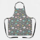 Siempre es momento de tomar el té en este elegante delantal de la impresión vintage, adornado con tazas de té hechas a mano, teteras, cucharaditas y bolsos de té sobre un fondo gris