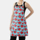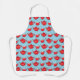 Patrón ilustrado lindo de una tetera y un vaso de agua rojos y blancos sobre un fondo azul claro.
