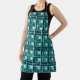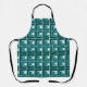 Este delantal tiene un diseño geométrico hecho de Ls en tonos verde azulados colocados en diferentes direcciones repitiendo a lo largo del diseño.