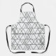Este delantal tiene un diseño moderno de mediados de siglo de triángulos blancos que se dirigen horizontalmente con líneas negras.