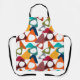 Este delantal tiene un diseño moderno de mediados de siglo de triángulos dispersos, algunos con agujeros, en colores retro.