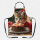 Un gatito de tabby, adorable y vestido con un traje de Santa Claus rojo festivo, mira atentamente a un pequeño pastel de chocolate decorado. Una sola vela encendida se sienta sobre el pastel, sugiriendo una celebración de cumpleaños o un deseo de los Navidades. Los brillantes ojos del gatito y el cálido fondo lleno de bokeh crean un ambiente de vacaciones reconfortante.