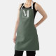 Delantal Uniforme de nombre inicial verde de salvia simple