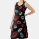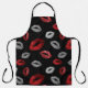 Delantal Valentines Red Silver Glitter Lips on Black