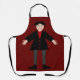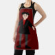 Este delantal increíble presenta una imagen de arte digital de un vampiro de Halloween espeluznante pero lindo. El vampiro tiene cabello negro espigado, una camisa roja y chaqueta negra con botones en forma de corazón de color rojo sangre. Tiene una sonrisa espeluznante y largos colmillos blancos. También tiene uñas amarillas, calcetines morados y zapatos negros con hebillas doradas. Sus brazos están abiertos para darle una malvada bienvenida.