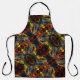 Delantal Verde Amarillo Rojo sobre papel rojo oscuro, con f
