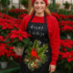 Este delantal diseñado para las fiestas navideñas presenta un diseño de Navidad negro con vegetación y copos de nieve de temporada. Un delantal bellamente diseñado para usar mientras hace manualidades o cocina, y si trabaja como florista, este delantal sería bonito de usar durante las fiestas.