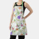 Este Shabby Chic Floral por todo el delantal impreso tiene flores rosas, flores amarillas, flores púrpuras y flores rojas en un campo de hojas verdes.