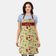 Vintage Baking Apron con un bonito estilo retro con utensilios de horneado y flores simples todo en tonos amarillos, verdes y rojos vintage. Puede hacer que el patrón sea más grande o más pequeño en el Apron. Personalizado con un nombre.