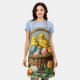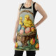 Cuidados pollitos amarillos de Pascua sentados en una cesta llena de huevos con vibrantes tulipanes por todas partes. Este delantal le proporciona la cantidad de nostalgia adecuada a su cocina de Pascua y su horneado esta primavera. Está disponible en diferentes tamaños .