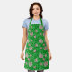 Apron con un patrón de William Morris Art Nouveau de flores de miel sobre un fondo de viñas y hojas - flores en tonos de rosa hielo, con hojas verde esmeralda, en un fondo verde pastel