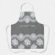 Delantales personalizables con patrón de encaje falso y texto de mensaje que puedes personalizar o eliminar y color de fondo gris discreto que puedes dejar como se muestra o personalizar. Diseñado para cualquiera que disfrute y coleccione antigüedades, una tienda de antigüedades o que simplemente disfrute de este diseño retro.