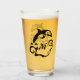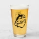 Un delfín salta y choca en una ola. El ilustracion, de estilo híbrido, es una silueta y una parte tribal. El diseño general es circular con el medio vacío para un monograma.