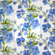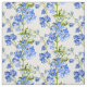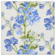Delfinos florales de bello arte azul, verde sobre tela blanca. Ideal para el tejido y otros proyectos de costura. Impresión de delfinio coloreada a partir de una obra de arte original en acuarela y gouache de Sarah Trett.
