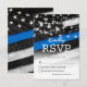 Tarjetas de respuesta con tema policial que presentan una bandera de EE. UU. con la delgada línea azul, luces de cadena y una plantilla de RSVP para las fuerzas del orden que es fácil de personalizar.