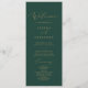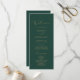 Este delicado programa de celebración de bodas verdes con caligrafía dorada es perfecto para un boda moderno. El romántico diseño minimalista presenta una encantadora y elegante tipografía de champán amarillo dorado sobre un fondo verde esmeralda con un aspecto limpio y sencillo. Incluya el nombre de la novia y el novio, la fecha y ubicación del boda, el mensaje de agradecimiento, el orden de servicio, la fiesta de boda y un monumento opcional "en memoria amorosa".
