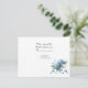 Aquí encontrará una tarjeta de respuesta boda que ofrece elegancia y tranquilidad, con su suave fondo blanco que ofrece un ambiente sereno para sus detalles de RSVP. Delicadas hortensias azules, enclavadas junto con una suave cinta azul, adornan con gracia la esquina, añadiendo un toque de belleza natural y calidez al diseño. Creando un elemento encantador que realza el ambiente romántico y acogedor de la tarjeta. Este rsvp da un toque de sofisticación floral.