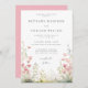 Este diseño presenta un ilustracion de delicadas flores silvestres y mariposas en tonos rosas y verdes.