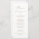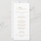 Esta delicada tarjeta de menú impresa en oro o imprimible es perfecta para un boda moderno. El romántico diseño minimalista presenta una encantadora y elegante tipografía de champán amarillo dorado sobre un fondo blanco con un aspecto limpio y sencillo. Este menú se puede utilizar para la recepción de bodas, la cena de ensayo o cualquier evento.