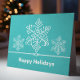 Envíe un toque de elegancia invernal con esta tarjeta de felicitación de vacaciones turquesa Delicate Snowflakes. Con un suave fondo de textura y elegantes y delicados copos de nieve, este diseño combina el encanto atemporal con un diseño limpio y sencillo. La tipografía moderna combina a la perfección con un diseño elegante, lo que la hace perfecta para extender los sentidos deseos cálidos de las vacaciones y los alegres saludos de Navidad. Ideal para los amantes de un refinado tema de invierno vacacional, esta tarjeta trae la belleza de la temporada a cada buzón con un elegante "Happy Holidays".