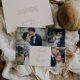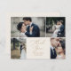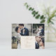 Esta delicada tarjeta de agradecimiento con plantilla para 4 fotos en oro y crema es perfecta para una boda moderna. El diseño minimalista romántico presenta una tipografía amarilla dorada champán encantadora y elegante sobre un fondo de crema marfil con un aspecto limpio y simple. Personalice la parte trasera de la tarjeta con sus nombres y un mensaje de agradecimiento. Alternativamente, deje la sección de la plantilla del mensaje de agradecimiento en blanco para escribir a mano una nota personalizada en cada tarjeta después de que lleguen. Estas tarjetas se pueden utilizar para una boda, una ducha de novia o cualquier evento especial.
