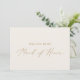 Esta delicada tarjeta de presentación de oro y crema es perfecta para un boda moderno. El romántico diseño minimalista presenta una encantadora y elegante tipografía de champán amarillo dorado sobre un fondo de marfil crema con un aspecto limpio y sencillo. Personalizar la tarjeta con el nombre de la novia y la criada de honor. Personaliza la parte posterior de la tarjeta con un mensaje personalizado.