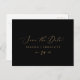 Este delicado oro y negro, salvo la postal de fecha, es perfecto para un boda moderno. El romántico diseño minimalista presenta una encantadora y elegante tipografía de champán amarillo dorado sobre un fondo negro con un aspecto limpio y sencillo.